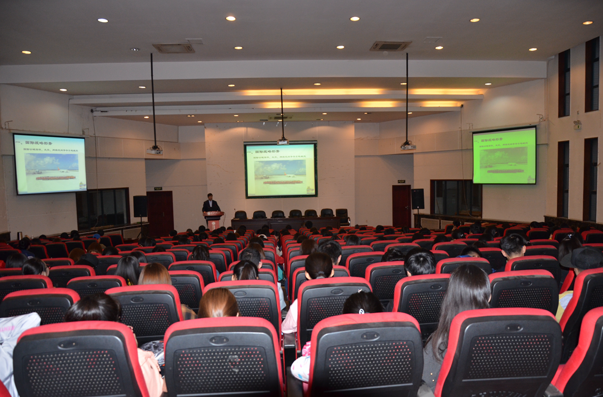 姜研究员以国际战略形势开题,阐述了中国与美国、日本等国家和地区之间的国际战略形势和中国所面临的战略威胁,重点讲到美国与中国的政治、军事、科技等领域的战略博弈,指出霸权主义和强权政治是世界战争和冲突的主要因素,当前国际经济形势围绕规则制定权利和对海洋、太空、网络空间的争夺日趋激烈。报告中,姜研究员以习近平强军思想为主线,从习近平的强军战略、传承红色基因、中国军队改革、国防科技工业等方面系统讲述了中国人民解放军的成长历史,回顾了党的十八大以来国防和军队建设全方位深化改革实现的历史突破和伟大成就,并结合军队的发展历程就习近平总书记在中国人民解放军建立90周年大会的讲话中指出的解放军能够战无不胜的党指挥枪、坚定的理想信念、改革创新、战斗精神、革命纪律、军民团结六个根本原因进行了详细的阐述。整场报告,姜研究员以渊博的知识、昂扬的激情结合丰富的史实资料为在场师生做了一场生动务实的报告,精彩纷呈,气氛热烈,现场师生多次报以热烈的掌声。