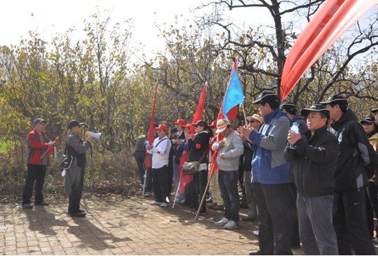 中午11:30分各队队员统一乘车出发,12:30分顺利抵达西安南郊子午峪小五台山下。在小五台山下竖旗扬威仪式隆重举行。仪式由裁判长齐捧虎教授主持,776net必赢官网院长白永秀教授致辞。最后由裁判组宣布比赛规则及注意事项。在裁判长的一声号令下各队队员整装出发向小五台山进军。初冬的小五台幽静而又美丽,各队队员登山途中互相鼓励,互相帮助,崎岖的山路,陡峭的山崖不时传出大家欢乐的歌声和爽朗的笑声。经过三个小时的坚持不懈,55名队员成功完成了“小五台”穿越,当最后一名队员安全抵达终点时,所有队员都为她送上了热烈的掌声。