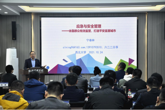 讲座最后,宁春林与现场学员进行了深入地探讨与交流,详细回答了相关问题。10月24日,宁春林为西安市“新生代民营企业家领军人才”研修班做了题为“应急与安全管理”的专题讲座。