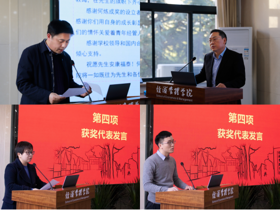 获奖教师代表魏婕副教授及获奖学生代表王思琛分别发言。七七级校友代表高全成教授讲话。他希望获奖老师和同学们在科研和生活中能够以何炼成老师为榜样,学习他一丝不苟的工作精神、孜孜不倦的奋斗精神、启智容错的教育精神、为国为民的奉献精神。希望每一位老师和同学能够一丝不苟的学习和工作、孜孜不倦的努力和奋斗,始终把最广大人民群众的根本利益放在第一位,为人民谋幸福、为民族谋复兴、为世界谋大同。为建设一个经济繁荣、社会和谐、国家富强、家园美丽的大同世界,用心、用力,奋斗不息。