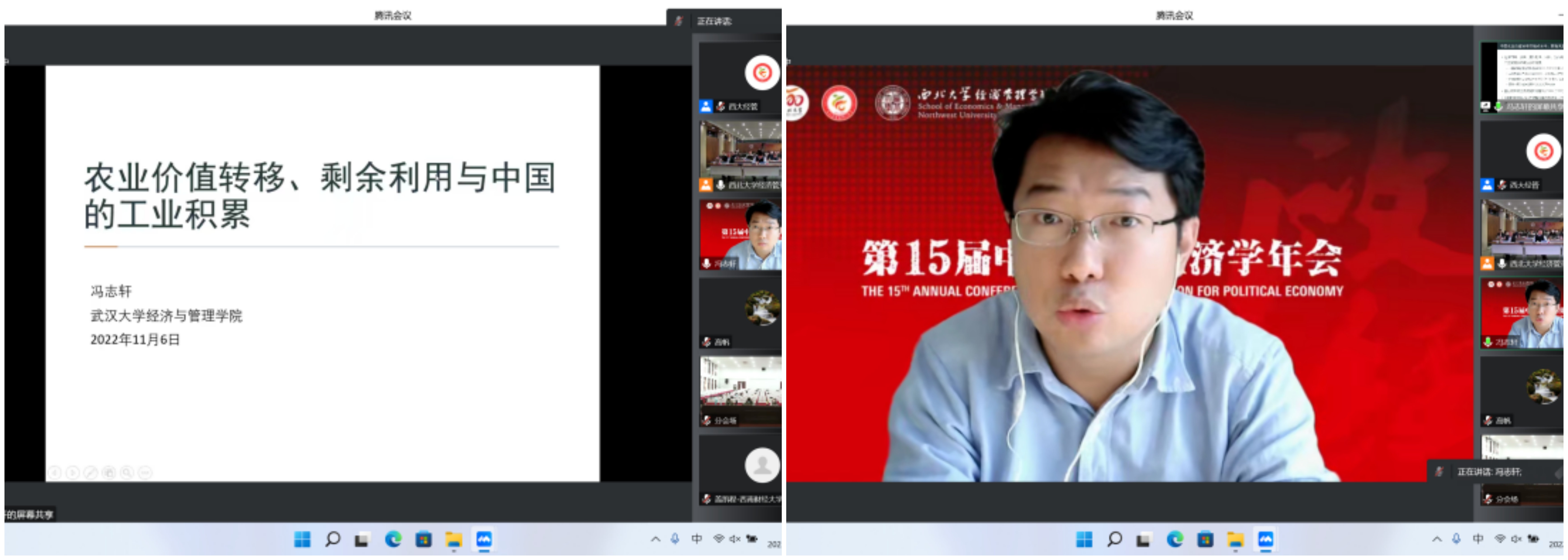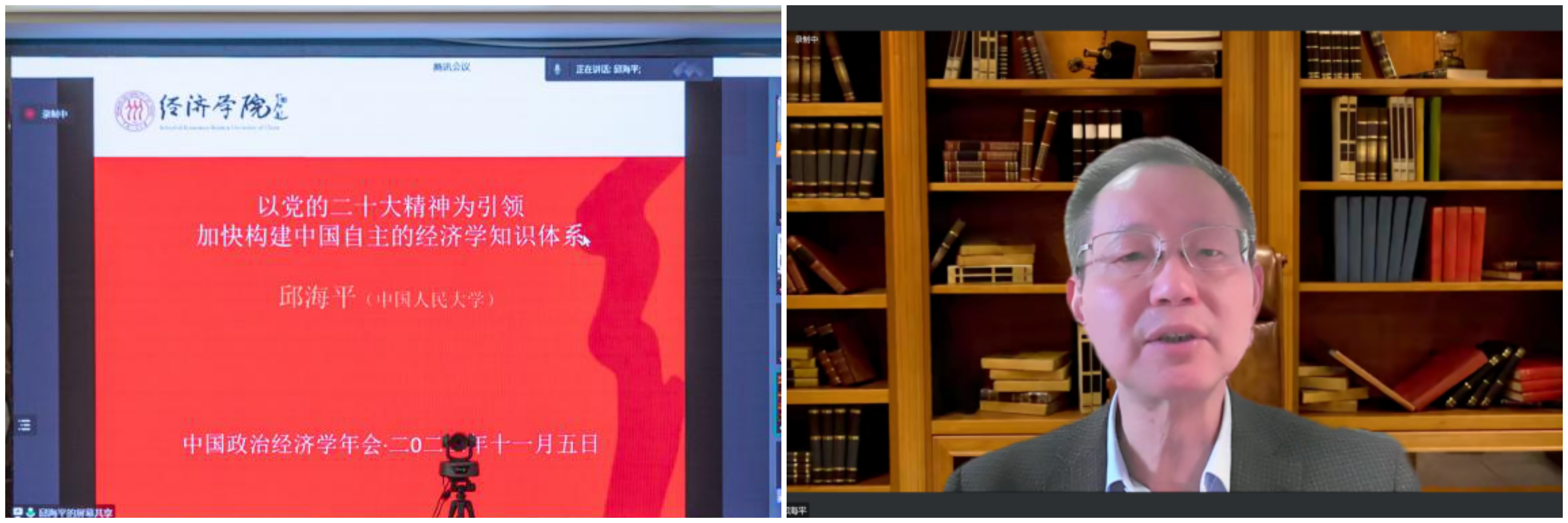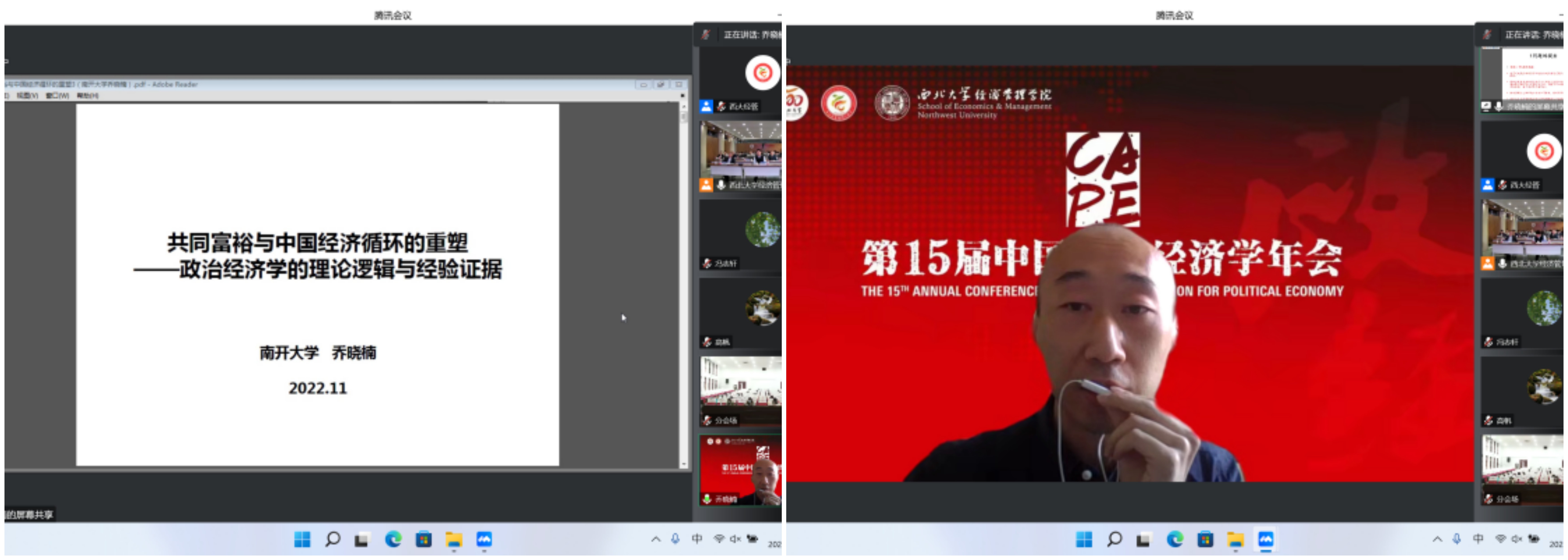 2022年11月5—6日,由中国政治经济学各理事单位共同主办、776net必赢官网承办的第15届中国政治经济学年会以“线上+线下”相结合的方式成功举行。本次会议共进行2场主旨报告、14场主题报告,7个分论坛60余篇论文交流,来自北京大学、清华大学、中国人民大学、中国社会科学院、复旦大学、南开大学、厦门大学、武汉大学、南京大学、四川大学、辽宁大学、西南财经大学、广东外语外贸大学、天津师范大学和西北大学等40余所国内重点高校和科研院所的150余位正式会议嘉宾围绕马克思主义政治经济学、中国特色社会主义政治经济学等重大理论和实践议题,发表观点、开展交流;线下200余名776net必赢官网师生参会,超2000人在线参与论坛,主论坛网络直播超5000人次观看,累计8000余人次参会。