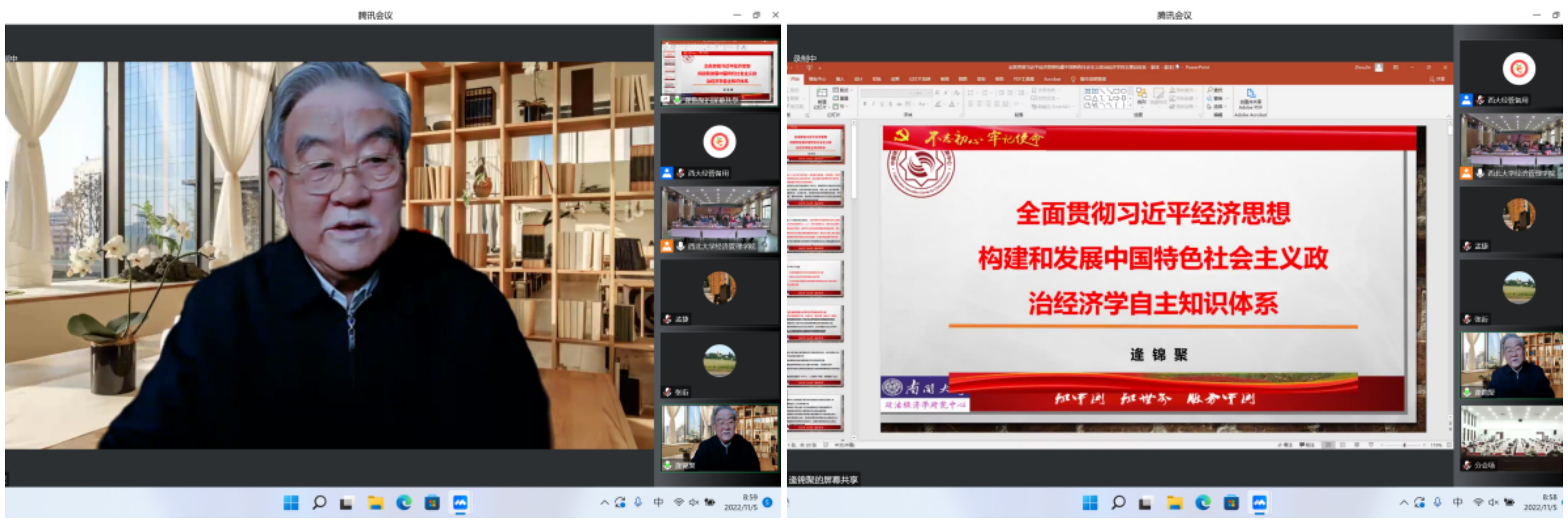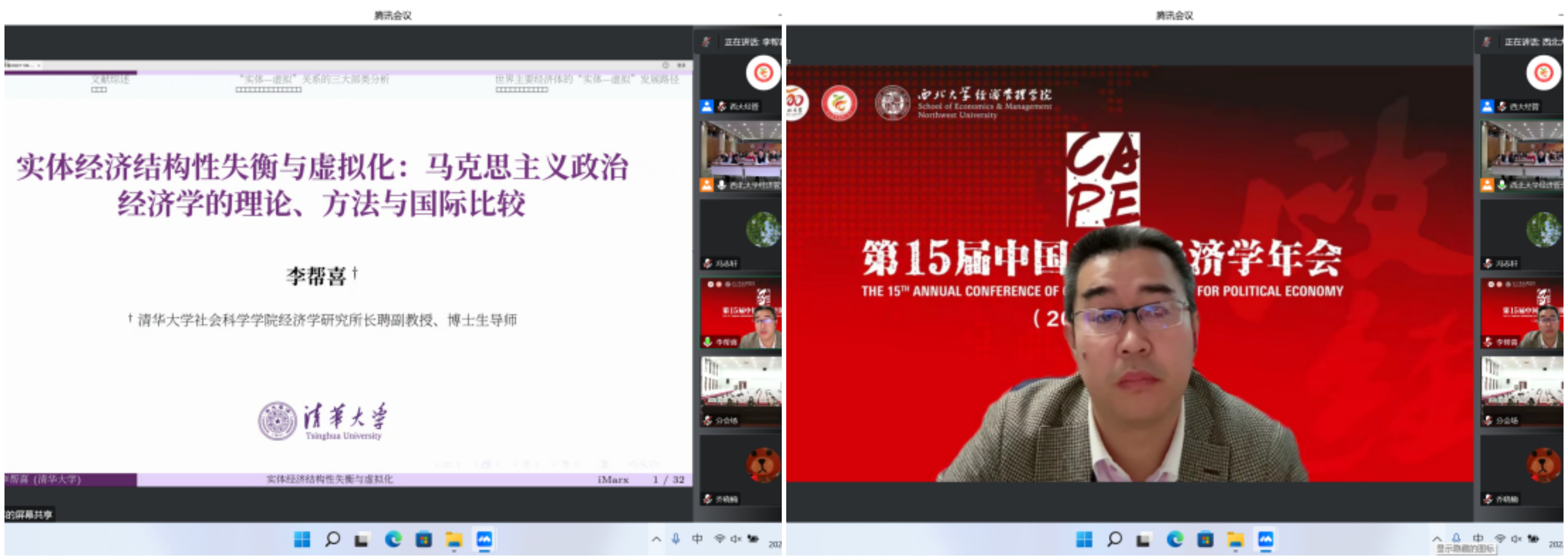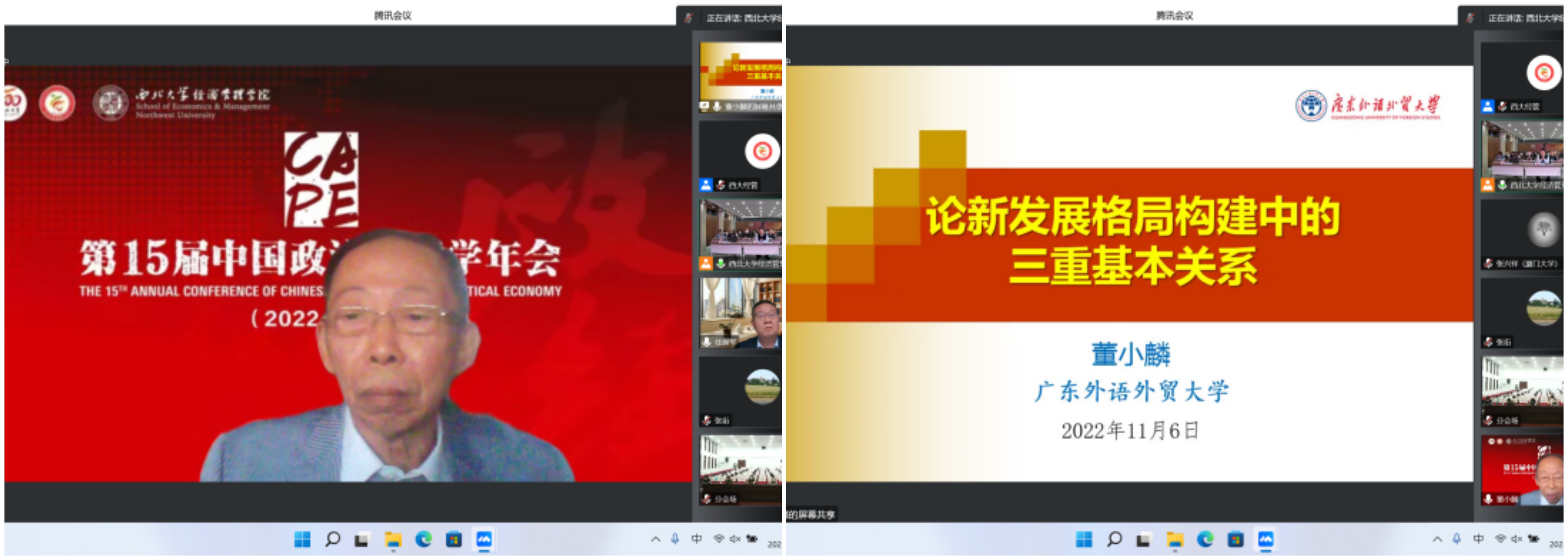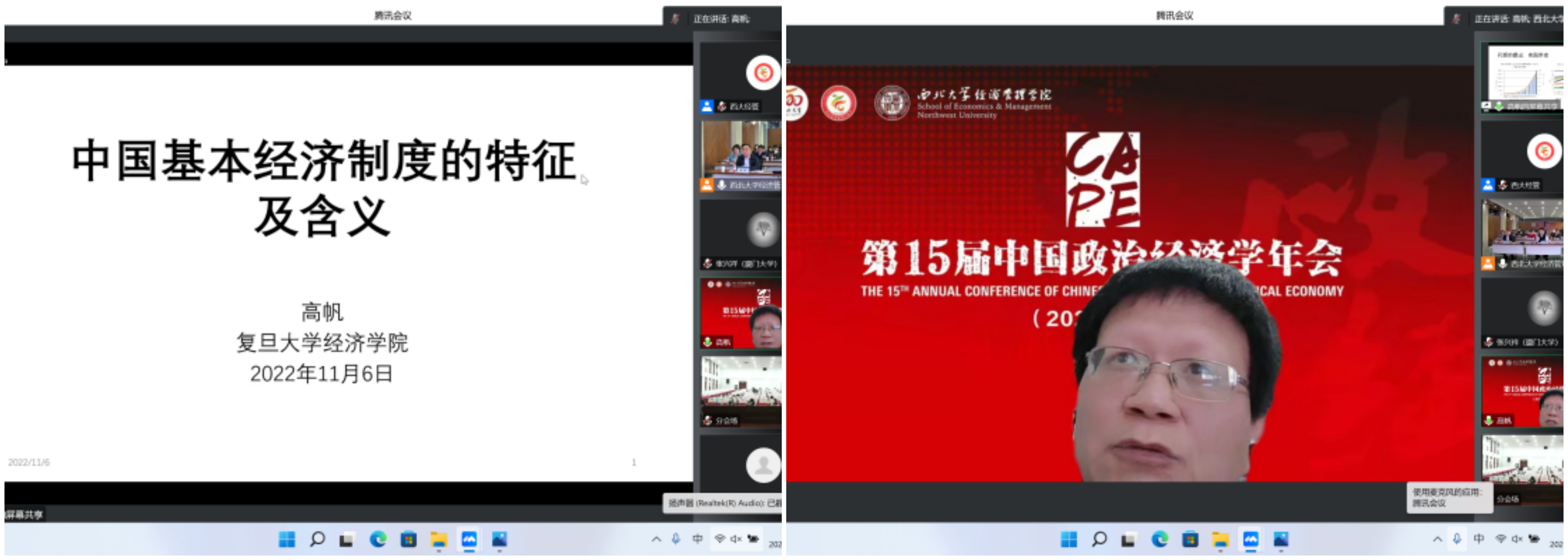 2022年11月5—6日,由中国政治经济学各理事单位共同主办、776net必赢官网承办的第15届中国政治经济学年会以“线上+线下”相结合的方式成功举行。本次会议共进行2场主旨报告、14场主题报告,7个分论坛60余篇论文交流,来自北京大学、清华大学、中国人民大学、中国社会科学院、复旦大学、南开大学、厦门大学、武汉大学、南京大学、四川大学、辽宁大学、西南财经大学、广东外语外贸大学、天津师范大学和西北大学等40余所国内重点高校和科研院所的150余位正式会议嘉宾围绕马克思主义政治经济学、中国特色社会主义政治经济学等重大理论和实践议题,发表观点、开展交流;线下200余名776net必赢官网师生参会,超2000人在线参与论坛,主论坛网络直播超5000人次观看,累计8000余人次参会。