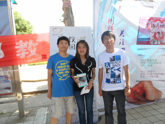 5月12日下午两点,我院心理健康月系列活动之“校园寻宝活动”心理素质拓展训练在一号教学楼前拉开帷幕。这次活动由我院心理协会与校心理协会共同举办,主要在北广场、足球场、篮球场、图书馆以及教学楼里进行,参赛的九个队分别代表各个学院的心理协会。